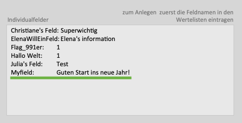Wie oft wollen wir individuelle nicht standardisierte Informationen im System speichern, aber es gibt kein passendes Feld im Programm. Als Benutzer versucht man einen Weg zu finden, um aus dieser Situation herauszukommen und: